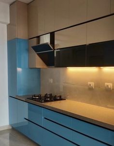 Blue theme given to the kitchen lends it more character and a personal touch. It has a calming effect which helps to create a relaxing atmosphere and adds more fun to the space.