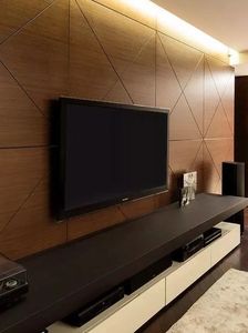 The wooden TV background wall gives a natural and rustic feeling. Due to the unique texture of the wood, it is simple and stylish. Compared with other materials, it gives us more warm and a natural vision.
