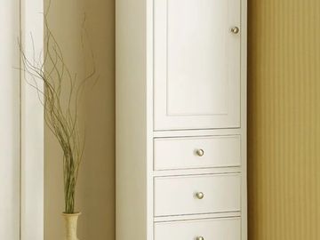 Free Standing Linen Cabinet : The Space you need for bathroom or dresser space. Tall white free standing linen closet with single door and 4 pull out drawers .