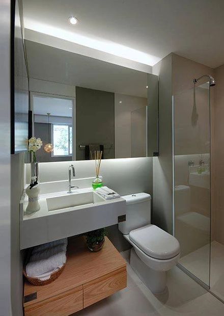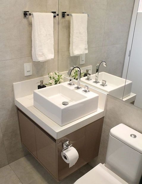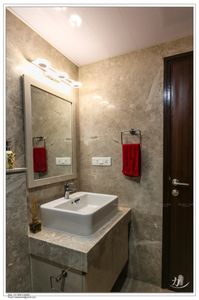 Using a wall-hung vanity rather than floor mounted so that it creates an airy feeling in small space and also eases cleaning and maintenance.